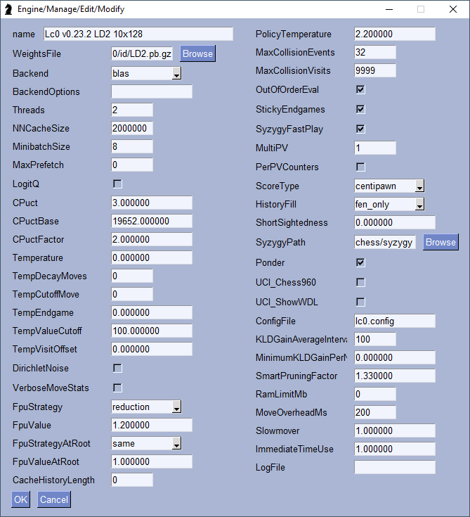 Configure engine via Engine->Manage->Edit, select engine and press modify.