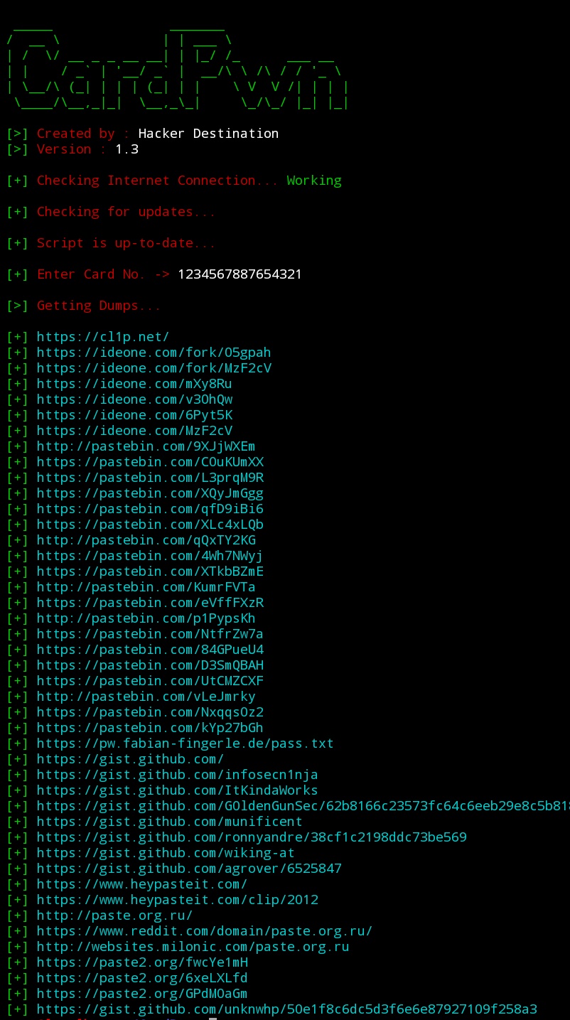 CardPwn Searches for the breached credit card details avaliable on the following 17 Websites:-
